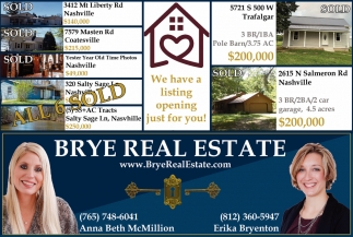Ads for Brye Real Estate in Trafalgar, IN