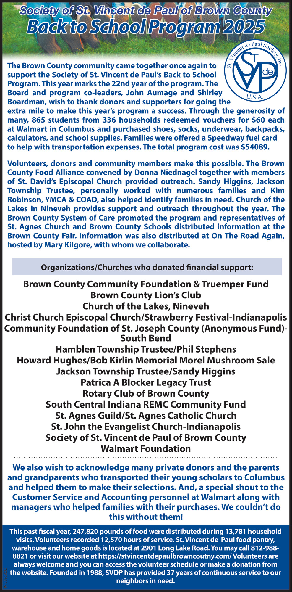 Jan 28, 2026. St. Vincent De Paul Of Brown County Education Ads from BC Democrat