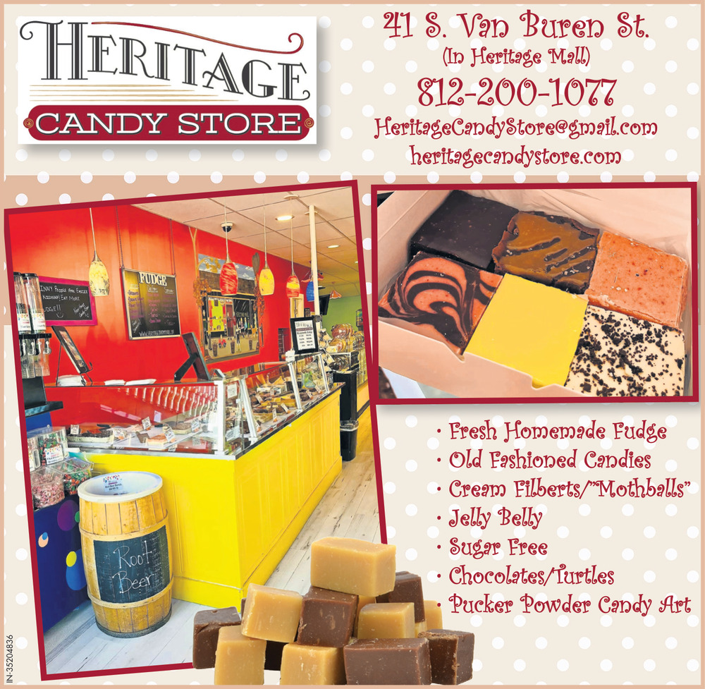 Ads for Heritage Candy Store in Nashville, IN